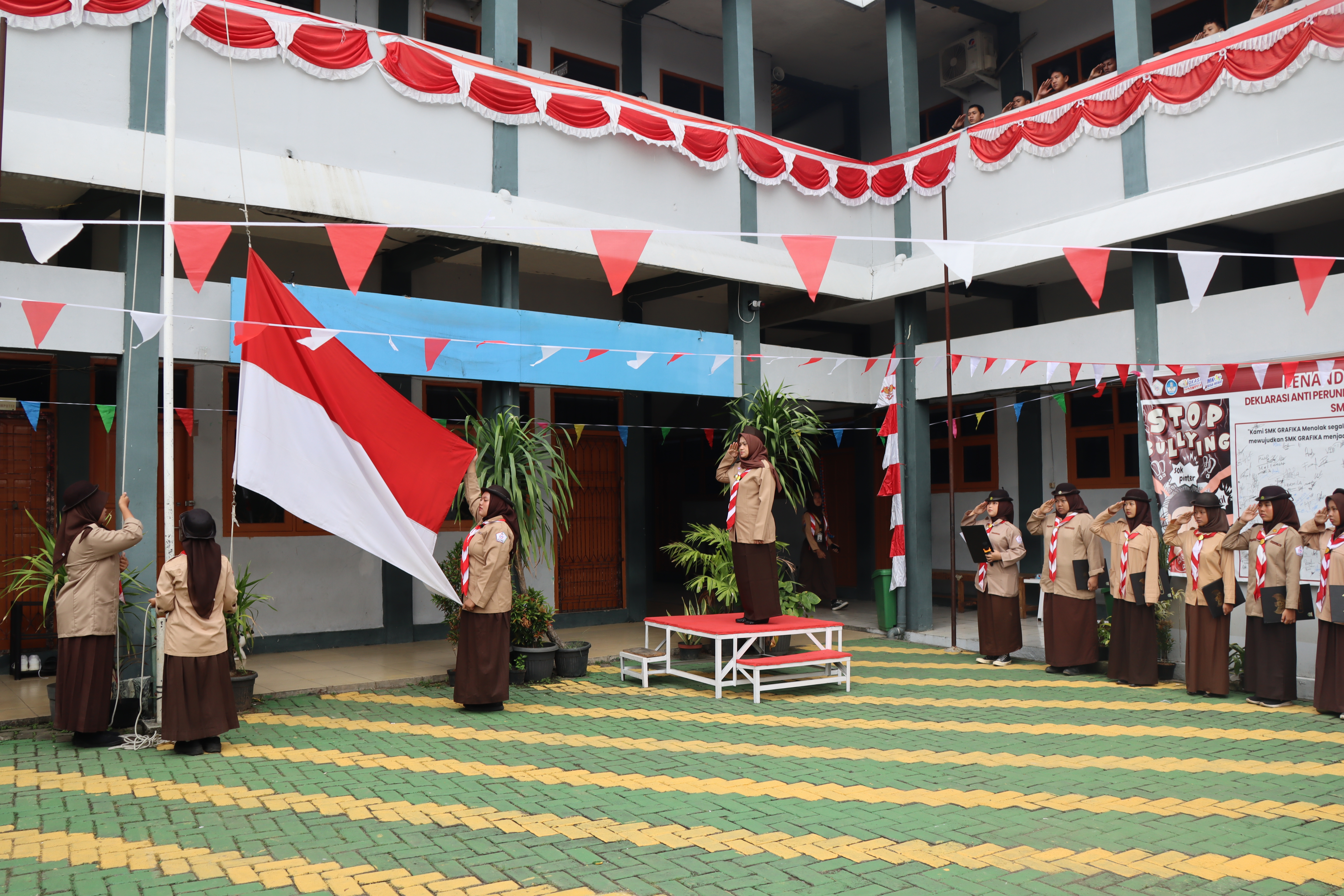 Pengibaran Bendera Oleh Tim Pramuka SMK Grafika