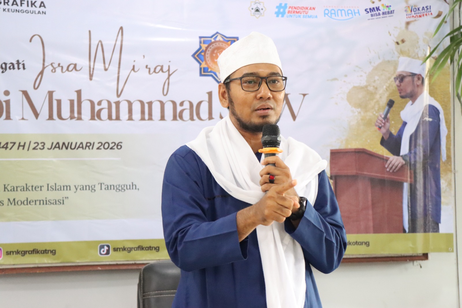 Dalam sambutannya, Kepala SMK Grafika Kota Tangerang menekankan pentingnya keseimbangan antara skill duniawi dan ketahanan spiritual.
