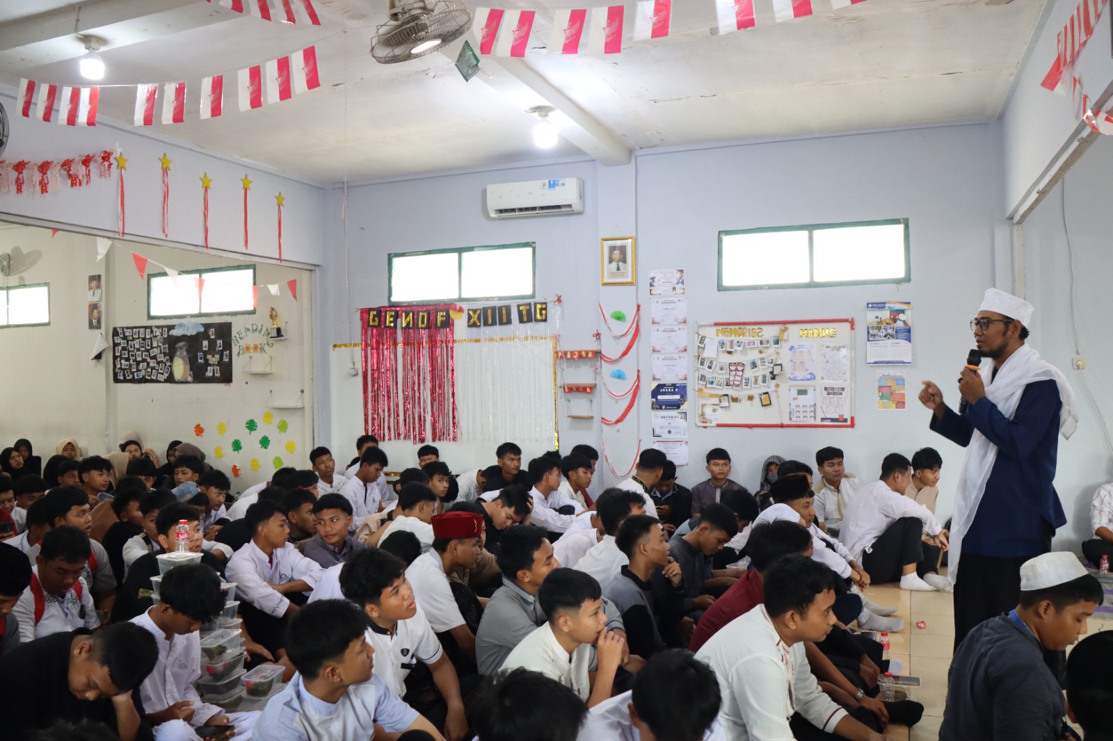 Para siswa tampak antusias menyimak, sesekali diselingi tawa saat Ust. Deni Eko Susilo, S.Pd. memberikan ilustrasi ringan tentang tantangan gen-z saat ini.
